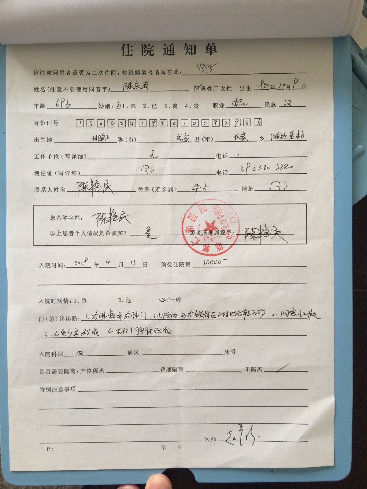 各位爱心人士,你们好,感谢你们打开我的求助信,我叫陈艳民,我想请各位好心人救救我的父亲陈庆有,他今年70岁,是河北省邯郸市成安县人。在2019年2月22日那天,在成安县人民医院,我的父亲被诊断为晚期肺癌。在得到这个消息的时候,我的内心久久不能平静,看着生病的父亲,我多希望自己也能帮他承担一分病痛!面对病魔我感觉到了从未有过的压力,只能竭尽所能为父亲治疗,希望他能尽快好起来。前期的手术治疗我们已经花了20万多块钱,可是后续放化疗费用还需要5万元左右,万般无奈才向各位好心人求助,恳求大家帮帮我,救救我父亲,您的关心和帮助,我和家人都没齿难忘,您的每一次转发都是无比温暖,您的每一份爱心都能给我们家带来生的希望,谢谢你们,好人一生健康幸福平安!恳请各位好心人士伸手相助,多多转发,您的每一次转发对我们都至关重要,每一次转发对我们来说都是莫大的帮助!