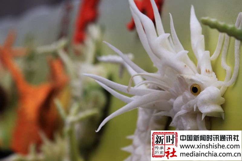 会场里人山人海,此起彼伏的摊位一家紧挨一家,琳琅满目的食品让人看了就馋,真是使人眼花缭乱、垂涎三尺。再看兴奋而又忙碌的商贩们一边熟练的忙活一边大声的吆喝,尽情地招呼着顾客。还有更引人叹为观止的萝卜雕刻艺术品,