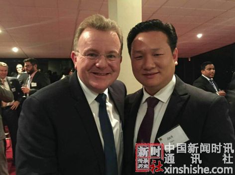 澳洲总理Tony Abbott与澳洲前总理与澳洲小企业部长Bruce Billsott分别与澳洲中心副主席陈育涛合影留念