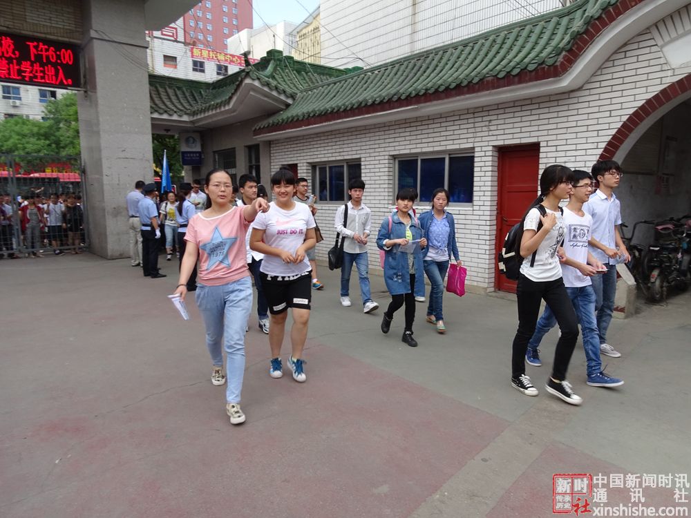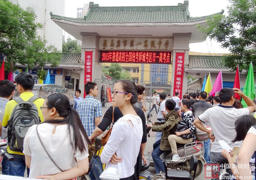 6月7日上午7点,河南驻马店市考点门口已聚集了不少前往参考的学生,门两侧的临街门面前的台阶上,马路便道道牙上坐的满满的,考生们有的聚集在一起畅聊,有的在家长的伴陪下等待,有的在看书,等待8点30分神圣的钟声。