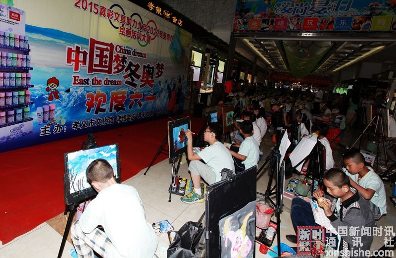 5月31日在孝义市华美新天地购物中心一层大厅,三百余名小朋友欢聚一起,以书法、绘画、剪纸、泥塑等形式表达了节日的快乐和心中的梦想。这次活动由孝义市文化馆主办、孝银金店和真彩文具协办,目的是为了培养少年儿童的审美情趣和良好的艺术修养,为少年儿童搭建一个展现自我的平台,鼓励更多的少年儿童挥动手中的画笔,放飞心中的梦想。(蒋建林)