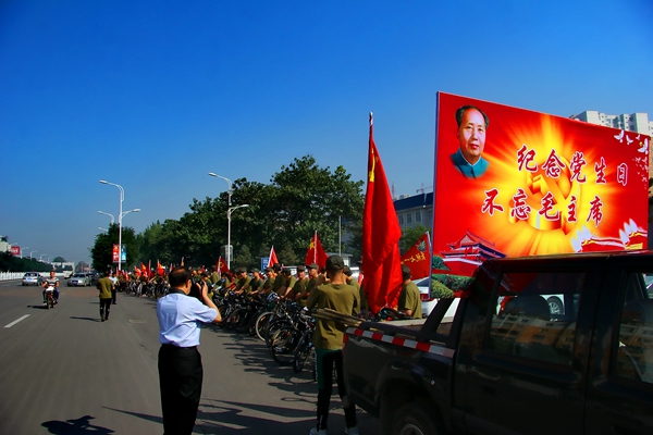 7月1日,是中国共产党诞生94周年,汾阳市民间团体举行了声势浩大的“纪念党的生日,不忘毛主席”为主题的纪念活动。
