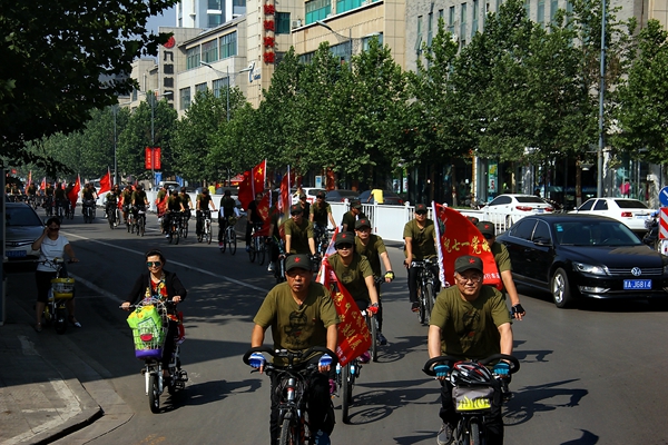 上午9时,参加活动的人员和车辆分别在汾阳文化广场、汾阳市政府门口列队,齐唱“没有共产党就没有新中国”,然后进行绕城骑行活动。