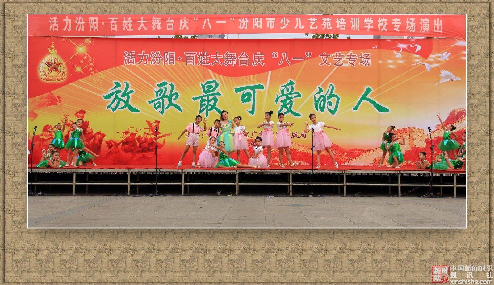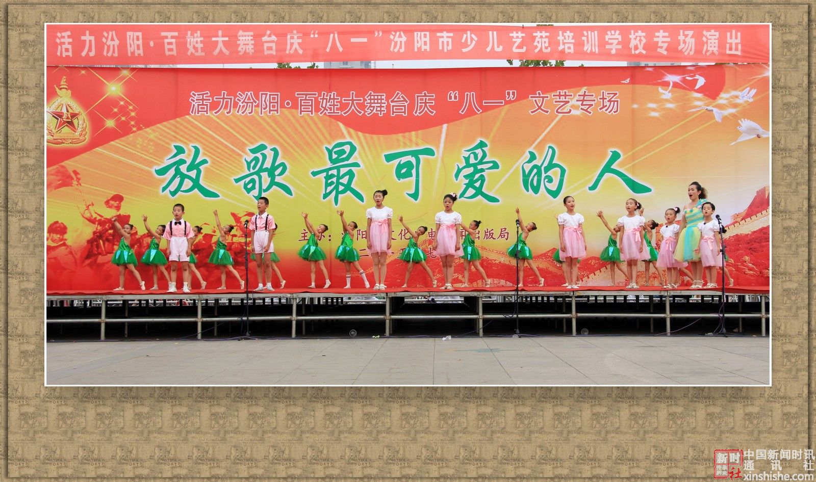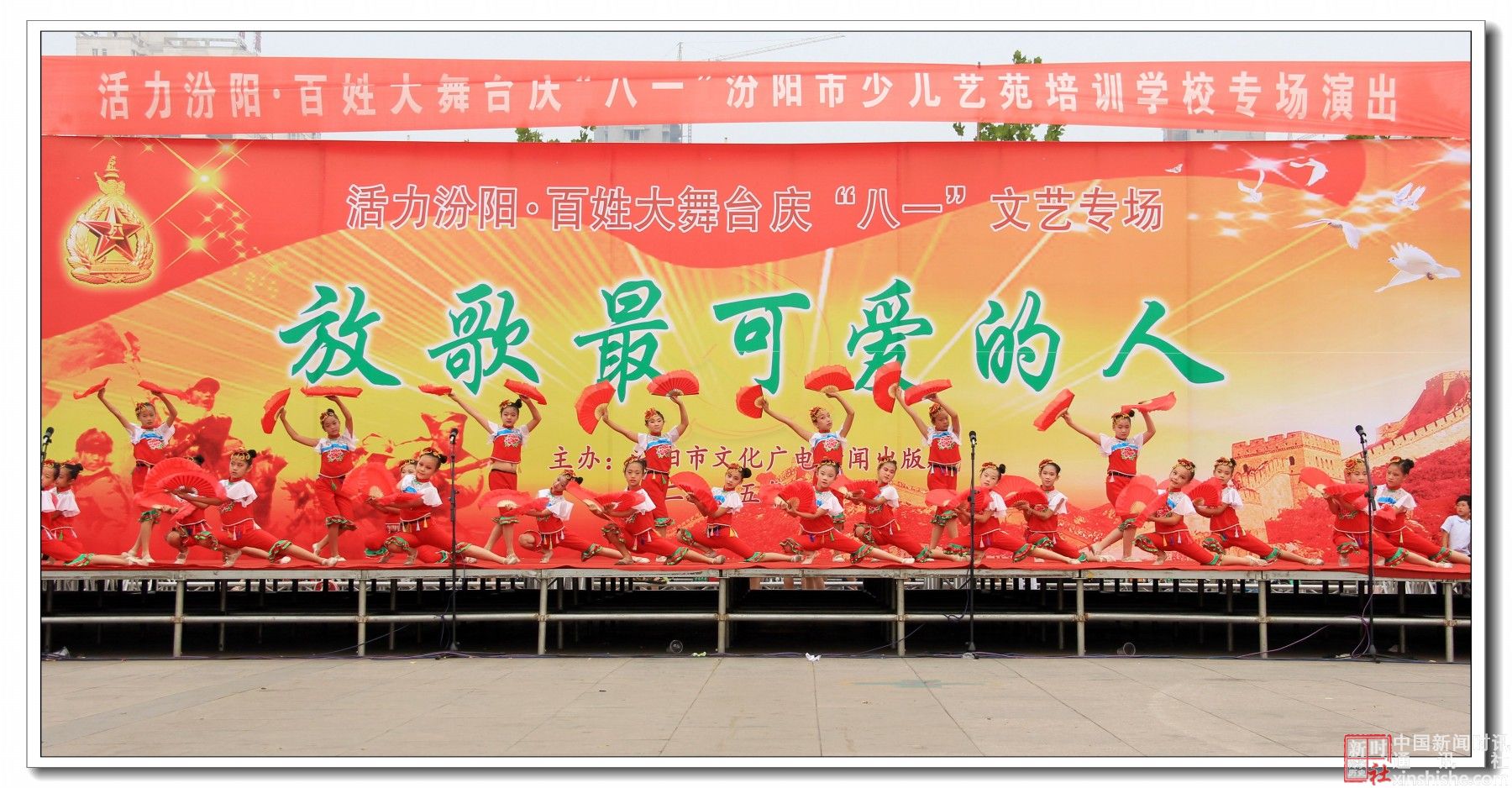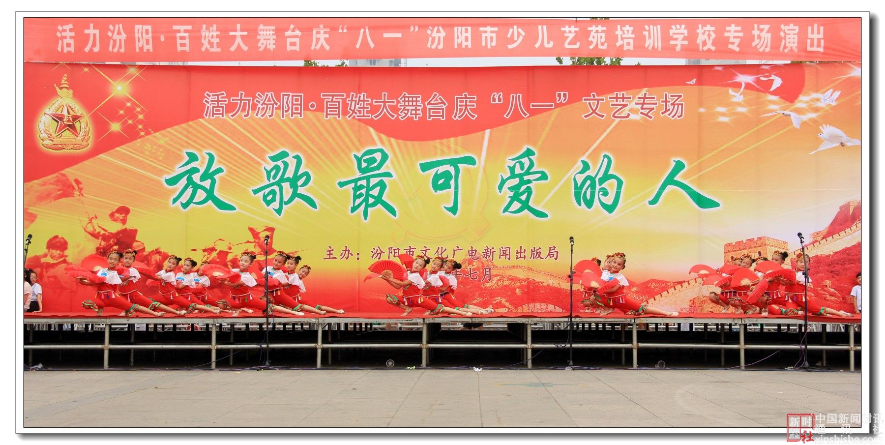 2015年7月31日下午,汾阳市文化广电新闻出版局主办、汾阳市少儿艺苑学校主演的:活力汾阳·百姓大舞台“八一”文艺专场演出在辽亮的歌声、欢快的舞步、激扬的旋律中拉开了帷幕,赞美祖国,歌颂军人,共同庆祝“八一”建军节。在此,我们谨向中国人民解放军官兵、武警官兵,复员、转业军人致以崇高的敬意和真诚的节日问候!祝你们节日快乐!