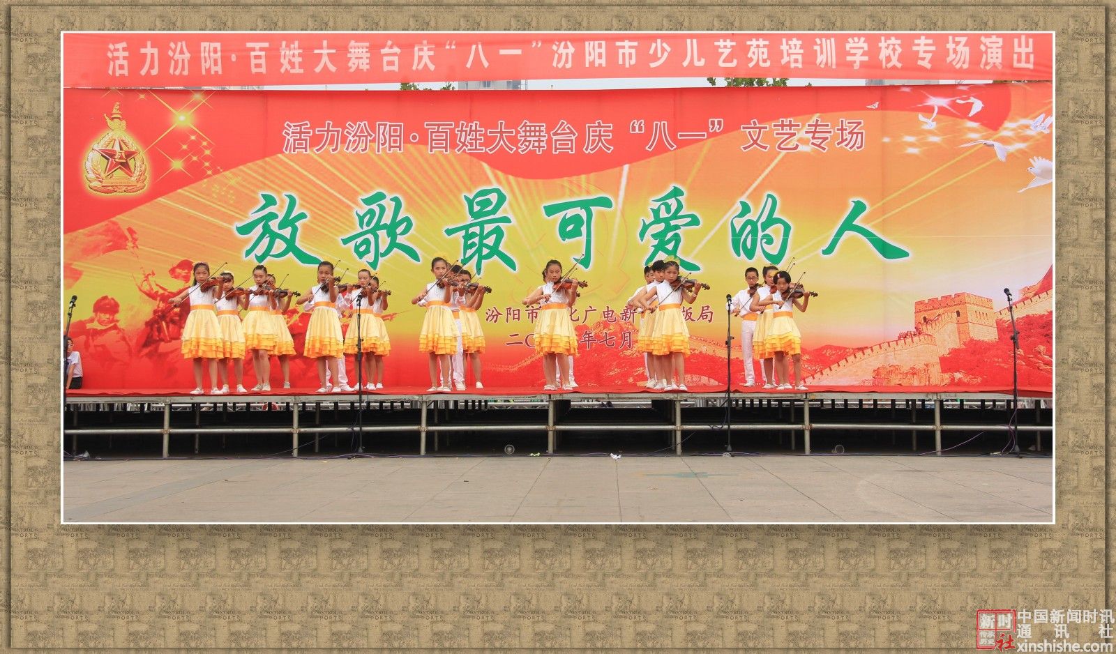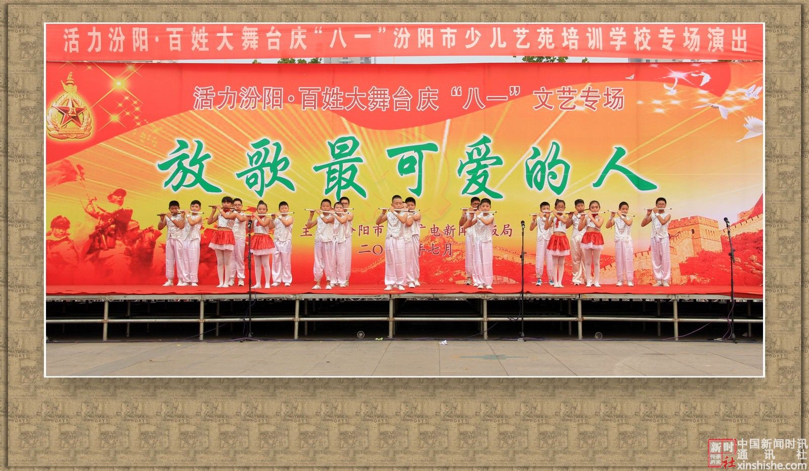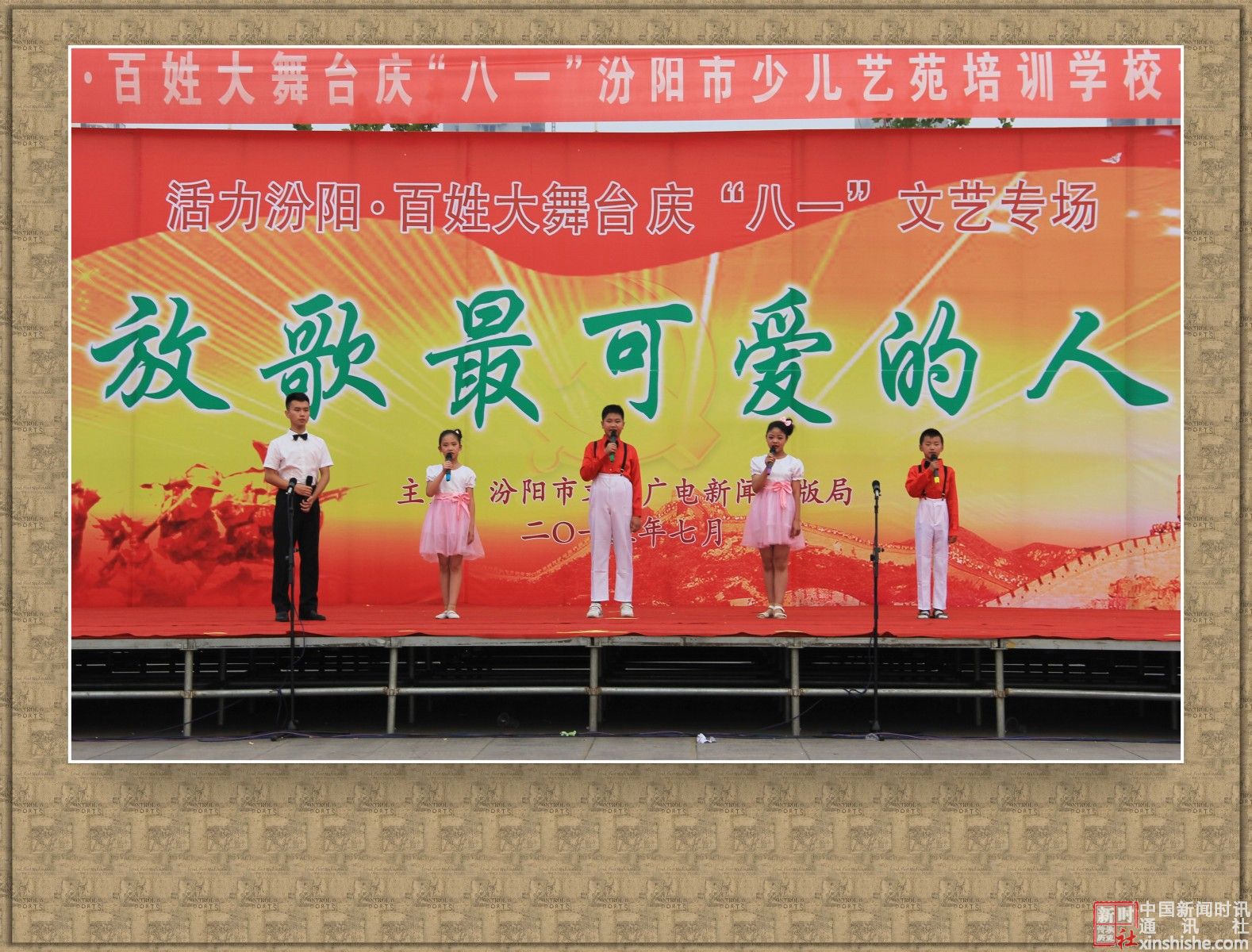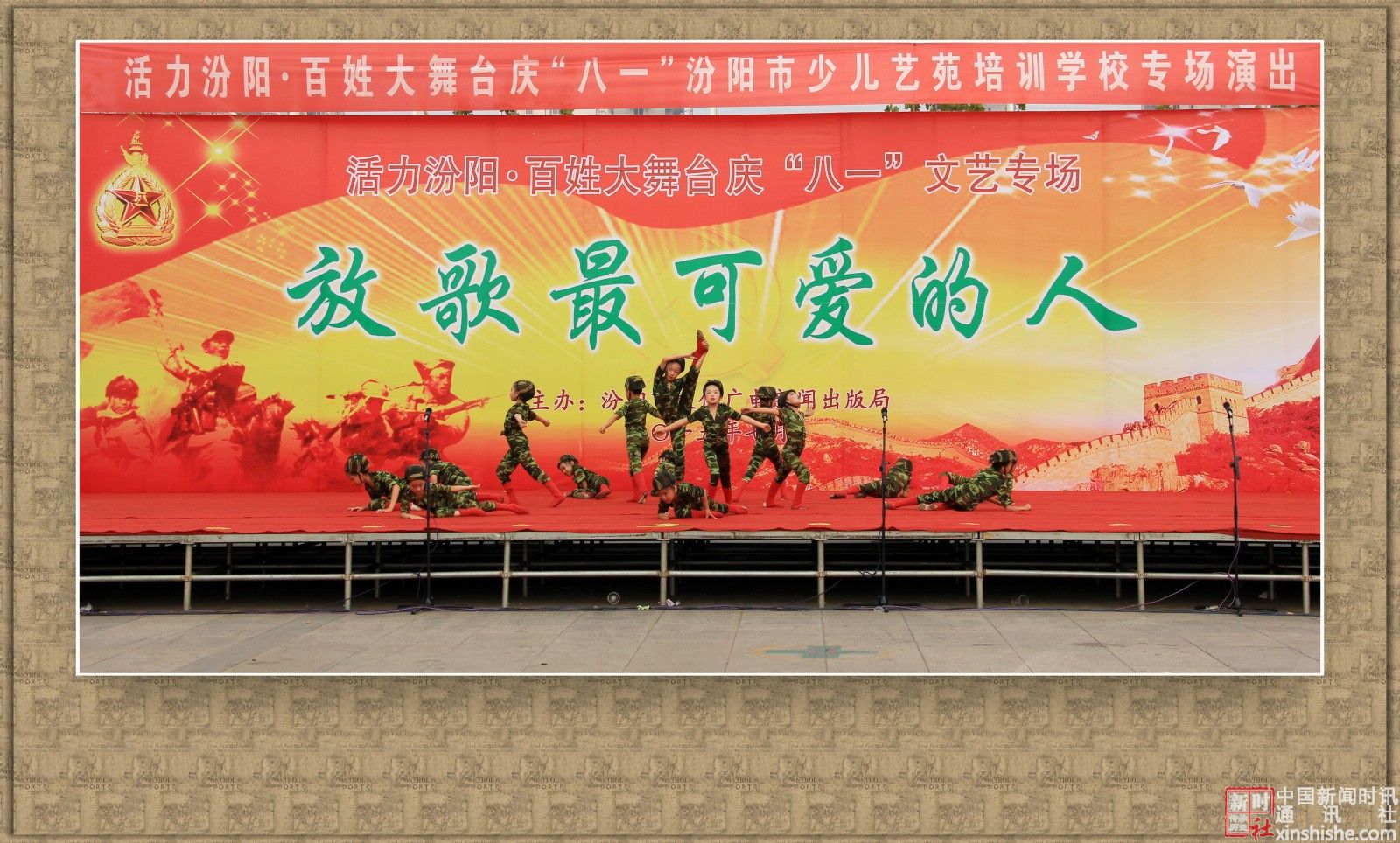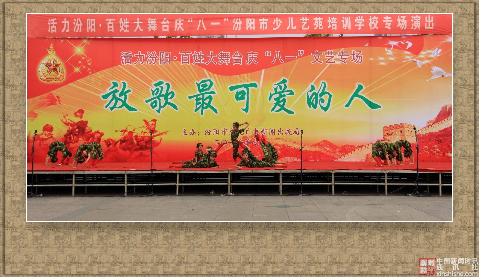 2015年7月31日下午,汾阳市文化广电新闻出版局主办、汾阳市少儿艺苑学校主演的:活力汾阳·百姓大舞台“八一”文艺专场演出在辽亮的歌声、欢快的舞步、激扬的旋律中拉开了帷幕,赞美祖国,歌颂军人,共同庆祝“八一”建军节。在此,我们谨向中国人民解放军官兵、武警官兵,复员、转业军人致以崇高的敬意和真诚的节日问候!祝你们节日快乐!
