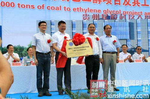 郭玉海宣布贵州•兴仁新一代60万吨煤制乙二醇项目及其工业试验装置开工。