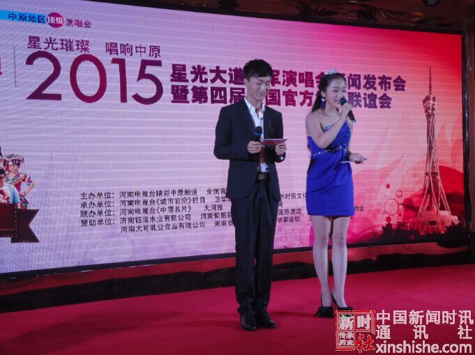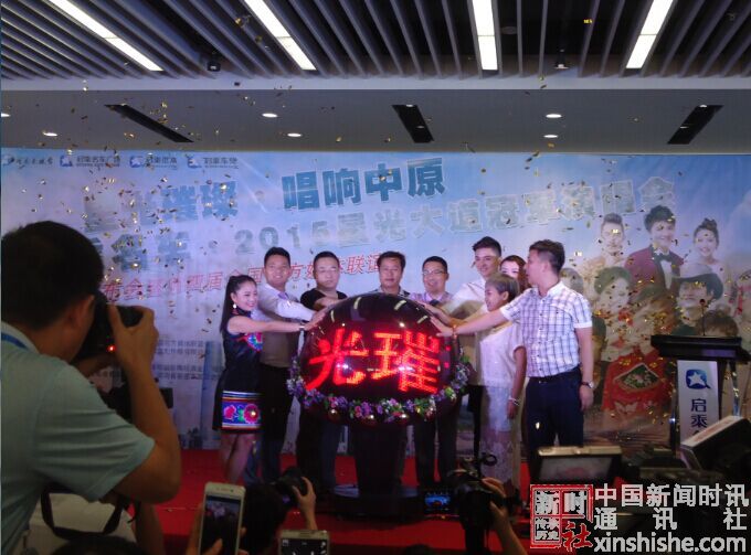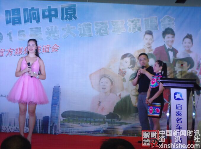 本网讯【特约记者 阿丹】 郑州报道 :2015年8月28日上午,由全国官方媒体联谊会、河南大象融媒体集团睛彩中原频道主办,卫华集团、河南电视台《城市前沿》栏目、郑州时讯文化传播有限公司联合承办的“启乘名车2015《星光大道》冠军演唱会新闻发布会暨第四届全国官方媒体联谊会”在郑州启乘名车广场隆重举行。