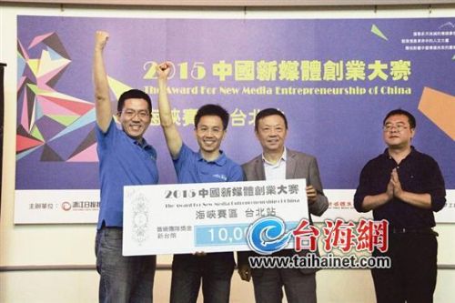 新时社网10月21日讯(海峡导报驻台记者杨思萍文/图)昨日,2015中国新媒体创业大赛海峡赛区首次跨越台湾海峡,在台北举办。12支台湾创客精英团队带着项目现场路演,并接受评审团的现场提问。最终AirSig空中签名:移动端身份证和FLiPER两个项目成功晋级11月份在杭州举行的决赛,并获得1万元新台币的奖金。