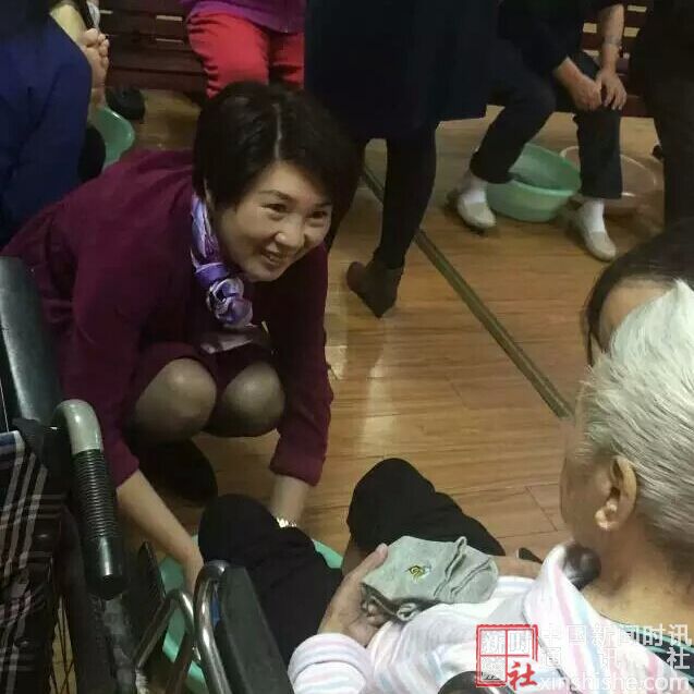 10月20日上午9:00,徐汇区梅陇敬老院迎来了一群穿着漂亮衣服的女人,他们是一群女企业家自发前来敬老院,为老人洗脚,穿新袜子。