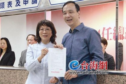 新时社网11月26日讯(海峡导报驻台记者杨思萍文/图)昨天,朱立伦与副手王如玄到中选会完成登记,正式成为台湾2016正副总统选举的参选人。