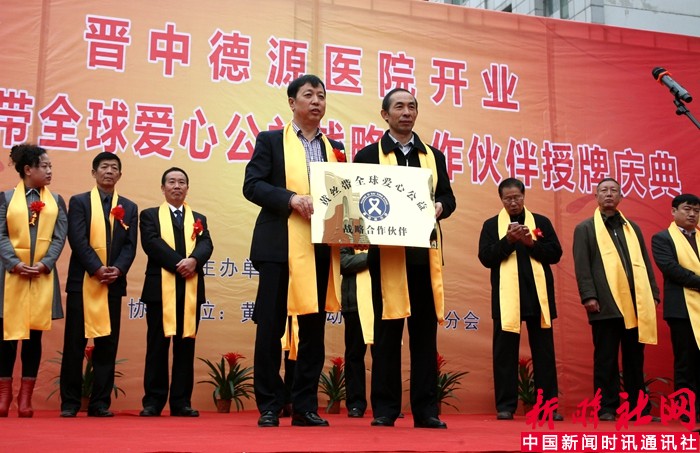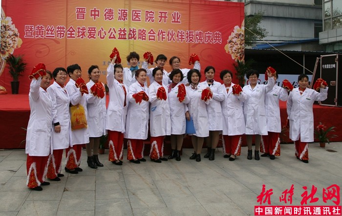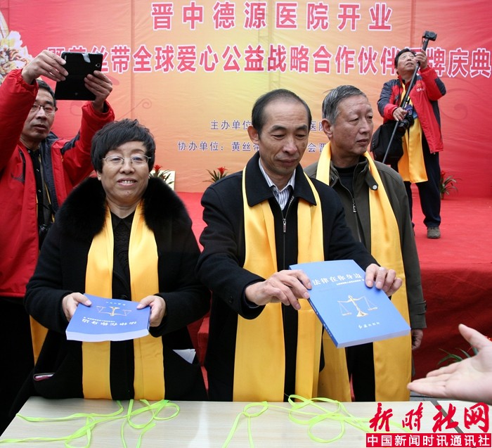 11月20日上午,在晋中市锦纶东街的晋中德源医院的院内外、锣鼓喧天、彩旗飘扬,来自全省各地的黄丝带行动志愿者及广大社会爱心人士欢聚在一起,共同见证黄丝带全球公益普法下基层行动隆重启动。