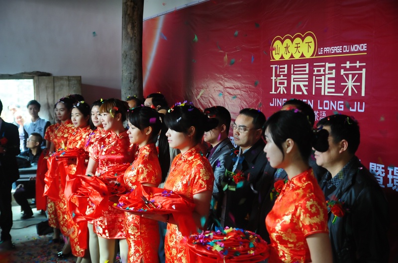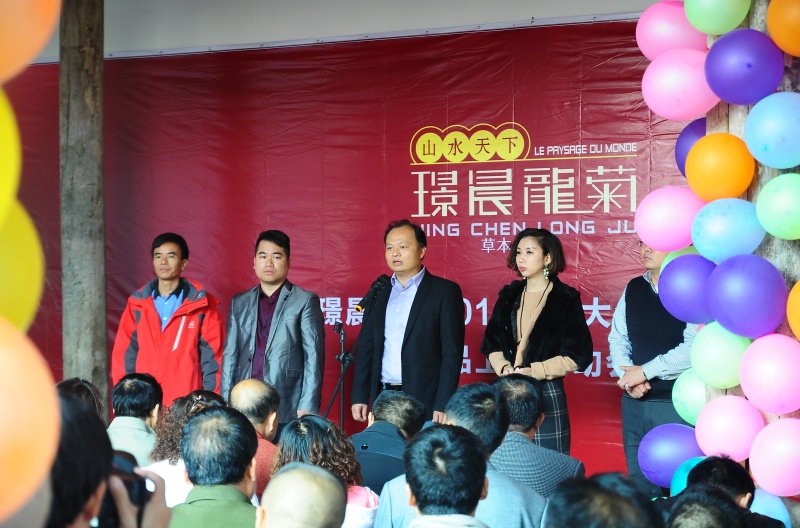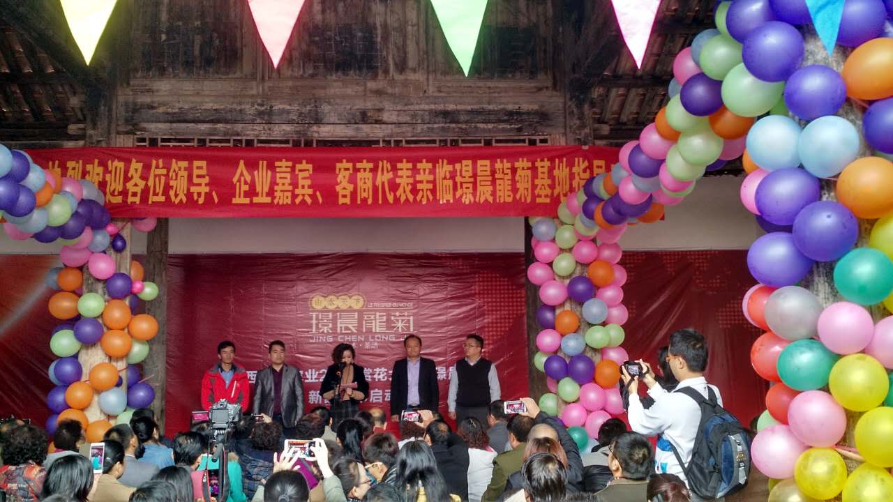 为了推动广西全州农业旅游发展,更好地传承和展示龙菊文化,由全州县县委县政府主办,广西璟晨承办的赏菊大会暨璟晨龙菊新品上市启动仪式于2015年11月1-2日,在桂林全州县龙水镇金田村委电子岭村的龙菊生产基地举办,来自广东、北京、江苏、贵州、四川、上海、黑龙江、辽宁等全国各地的经销商代表、媒体、微商代表、旅游达人、桂林各旅行社代表等300余人齐聚龙菊生产基地,嘉宾们在生产基地的一间老屋里,坐着小板凳,听政府领导和嘉宾们讲话,这种古朴接地气的发布会深得在场嘉宾的赞叹。