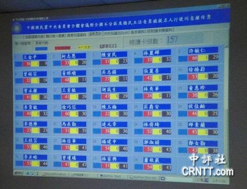 国民党不分区中央委员投票结果。红色为不同意、黄色为无效票、黑色为未圈选。