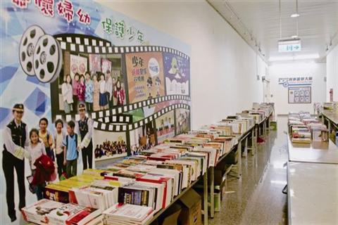 查扣赃书摆满警局走廊,受害业者被通知来认领,透过卷标、盘损清册比对,经过的民众还驻足翻阅,误以为在办书展。