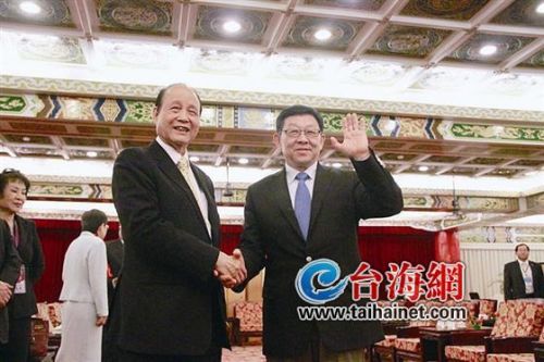昨天中午11点40分,陈德铭一行飞抵桃园,下午2时30分参访台中大甲镇澜宫,随后北上,晚间6时在台北圆山大饭店会见海基会董事长林中森并接受晚宴款待。