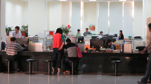 苗栗县府昨公布临时人员资遣名单,办公室气氛一片低气压。图自台湾《联合报》