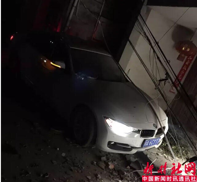 宝马女司机撞塌两层楼房 自己毫发无伤
