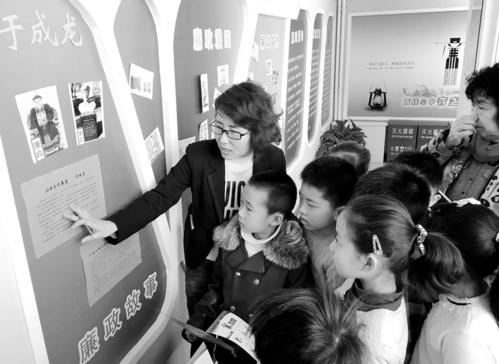 2月20日,孩子们正在听工作人员讲述廉吏于成龙的故事。新学期即将开始,当日,太原市迎泽区老军营一社区的红领巾寒假课堂进行他们假期的最后一次活动,在新创办的廉政文化走廊里,小学生们被一个个廉政小故事所吸引。在工作人员的引导帮助下,孩子们对于党和国家大力加强廉政建设的意义有了更直观深入的理解。
