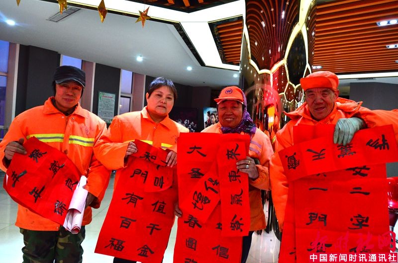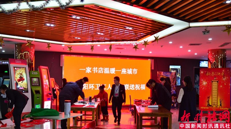 (本社记者:赵志伟讯)2016年2月5日下午,山西省汾阳市举办“一家书店温暖一座城市, 为环卫工人书写春联送祝福”活动。