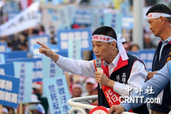 新时社网1月1日讯 2015年的最后一天!国民党高雄市议会党团号召四五千民众到高雄市政府抗议征收污水费,蓝军多名立委候选人轮流炮轰市府呛声市民抹爽,陈菊踹共、只有菊意,没有民意。现场总指挥、前议长许昆源更高分贝警告陈菊如果再漠视民意征收使用费,扬言动员十倍民众抗议包围市府。蓝军街头激情演出,让高雄冰冷选情注入一剂强心针。现场民众看到张显耀头绑白布条,从头到尾板着一张脸义愤填膺、充满正气、眼神视死如归,更私下笑称仿佛是张自忠将军再世,超有戏。