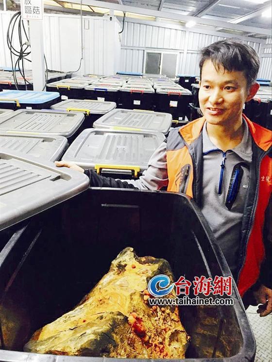 在许铭德的带领下,众人参观了牛樟芝的生产厂区,培育牛樟芝的方法很多,但祐全是将原生牛樟芝菌种植入牛樟椴木木心,使菌种生长于牛樟木上,并以套袋栽培法加速牛樟芝子实体的生长速度,使其不受季节温度变化的影响。负责培育牛樟芝的张艺钦给导报记者展示了植菌一年的牛樟椴木,此时,它被封闭在潮湿的套袋中,从植菌开始到36个月可以采收。植菌成功后,用箱式养殖的方法,在室温中保持潮湿环境即可,可以一直采收到第八年。