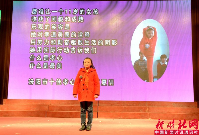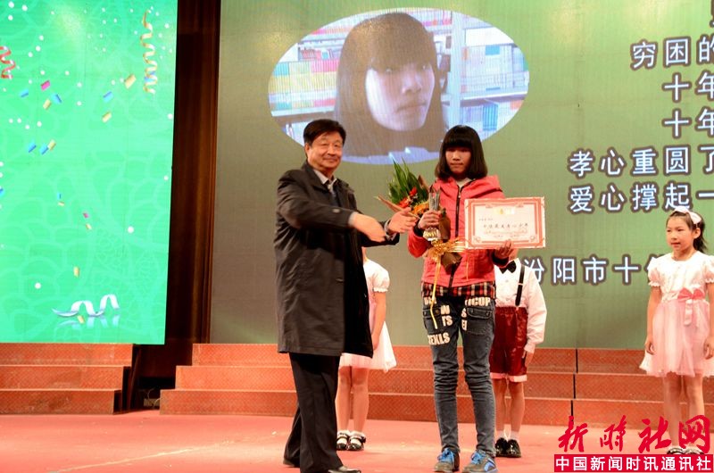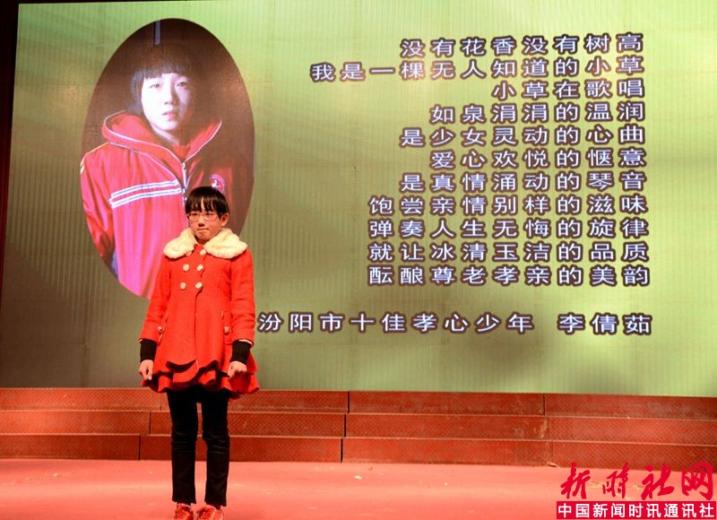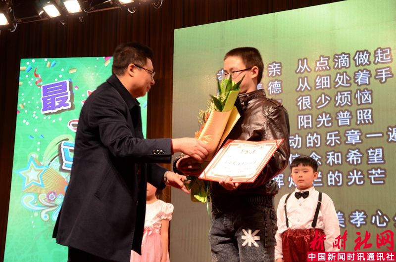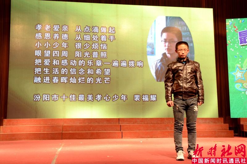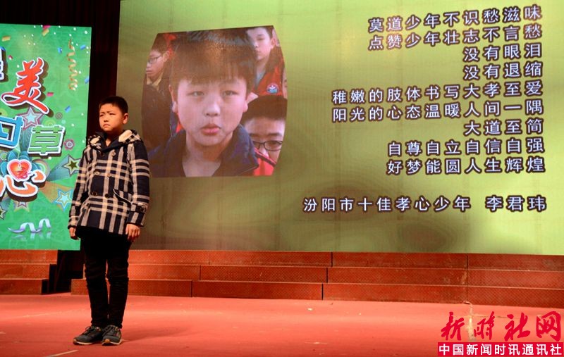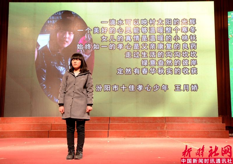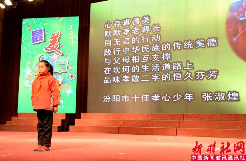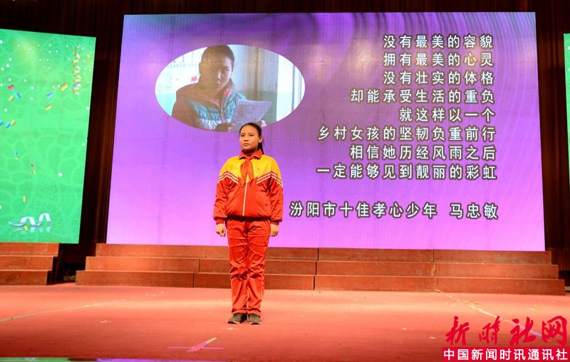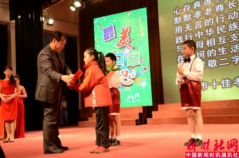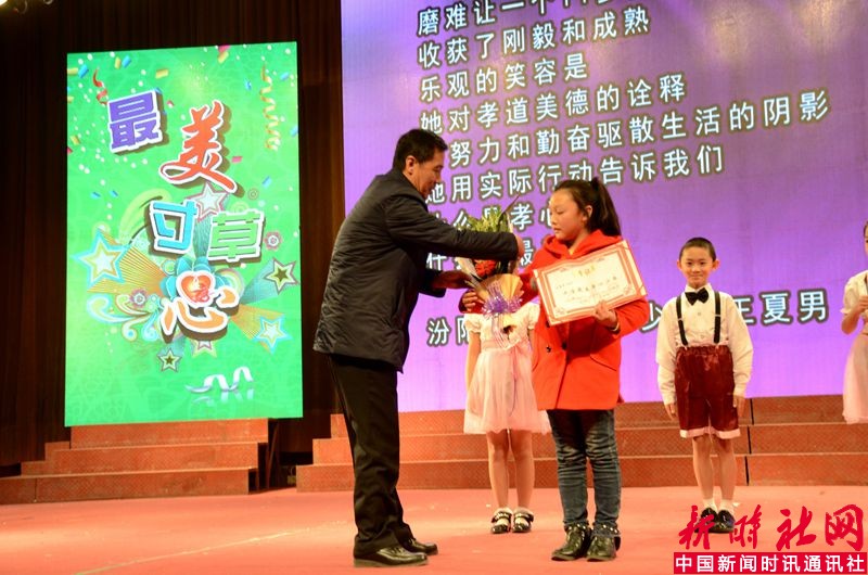 颁奖仪式由汾阳市南门小学演绎的古诗新唱《每逢佳节倍思亲》拉开帷幕,分别对马忠敏、刘晋雅、田凤霞、王月娇、裴福耀、王夏南、张淑煌、贾冰青、李君炜、李倩茹“十佳孝心少年”进行了颁奖。