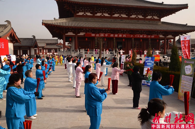 (本社记者:赵志伟)惊蛰的春雷刚刚开始,春风的脚步已匆匆来临。在一年一度的3.15国际消费者权益保护日即将来临之际,为深刻领会中国消费者协会今年“新消费、我做主”的主题。2月6日上午,由汾阳市烟草专卖局、汾阳市消费者协会、汾阳王酒业有限责任公司、汾阳市九都村镇银行主办,汾阳市太极拳协会、汾阳市综合艺术团承办的“质量惠民,银企携手---3.15维权活动”在汾阳市文湖汾阳王府院内举行,标志着我市3.15消费者维权系列活动拉开帷幕。