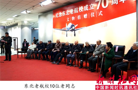 创建于1946年的东北老航校是我军在极其艰苦的条件下创办的第一所航空学校,培养了第一批举世闻名的空中战斗英雄和一大批高级指挥员,奠基了新中国的空军和航空建设。为使纪录老航校战斗历程的相关物品得到永久收藏、保护和利用,军博开展了大规模征集活动。东北老航校工作人员麦林、学员蔡演威分别代表东北老航校教、学员讲话;东北老航校校长常乾坤之子常砢代表老航校后代表示,“将它们无偿捐献给军事博物馆,为的是使这些文物资料能够有机会展示给世人,展示给我们的后辈,让他们知道前辈们是在什么样的艰苦环境下缔造了新中国的人民空军和人民航空事业!”