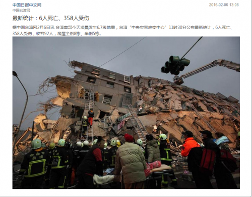 台湾6.7级地震最新统计:7人死亡、358人受伤