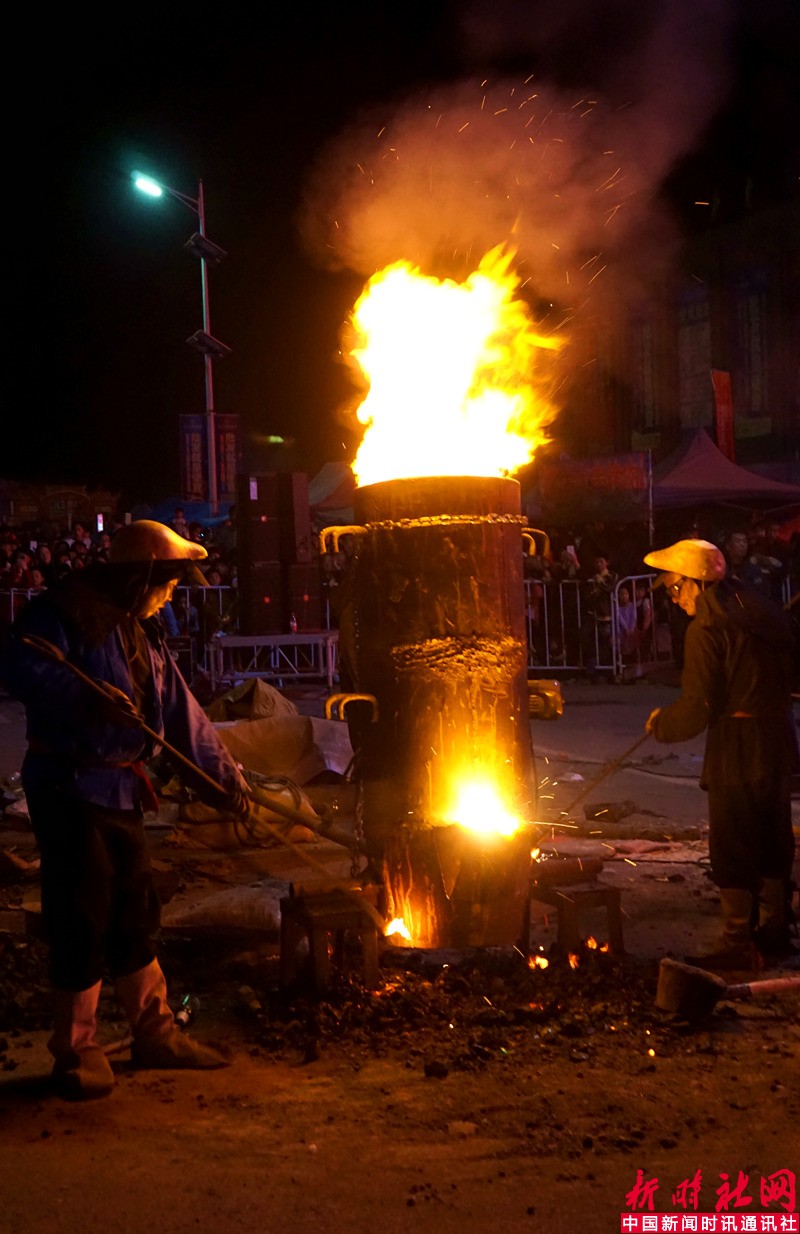 4月九日晚八点,驻马店市首届民俗文化节---三月三打铁花,在浙江国际商城开幕,国家级非遗项目-确山铁花惊艳登场,难得一见的民间绝活令人惊叹!确山铁花是中国最古老的民间社火,源头是中原古代先民祭祀天地、神灵、祖宗的宗教仪式和中国道教炼丹术及民间金属冶炼,至北宋已具规模,成为道士和民间金银铜铁锡五门工匠共同祭祀天地神灵和太上老君及火神的仪式。因受到民众喜爱,后融入起火、鞭炮、烟花、龙灯等形式而固定下来,演变为气势恢宏壮观的民间铁花焰火,独具特色,成为当地的重要民俗。确山铁花与全国各地的铁花表演均不相同,是全国铁花焰火中唯一被国务院命名的国家级非物质文化遗产项目,并获国家专利。