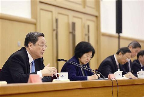 中共中央政治局常委俞正声出席会议并作重要讲话。俞正声指出,过去一年,以习近平同志为总书记的党中央,准确分析和把握新时社形势,主动引领两岸关系发展,两岸领导人实现66年来的首次会面,翻开了两岸关系历史性一页,具有重要的历史意义和广泛深远的国际影响。各地各部门认真贯彻落实中央对台工作方针和决策部署,迎难而上,积极作为,推动对台工作取得新进展。中央给予充分肯定。