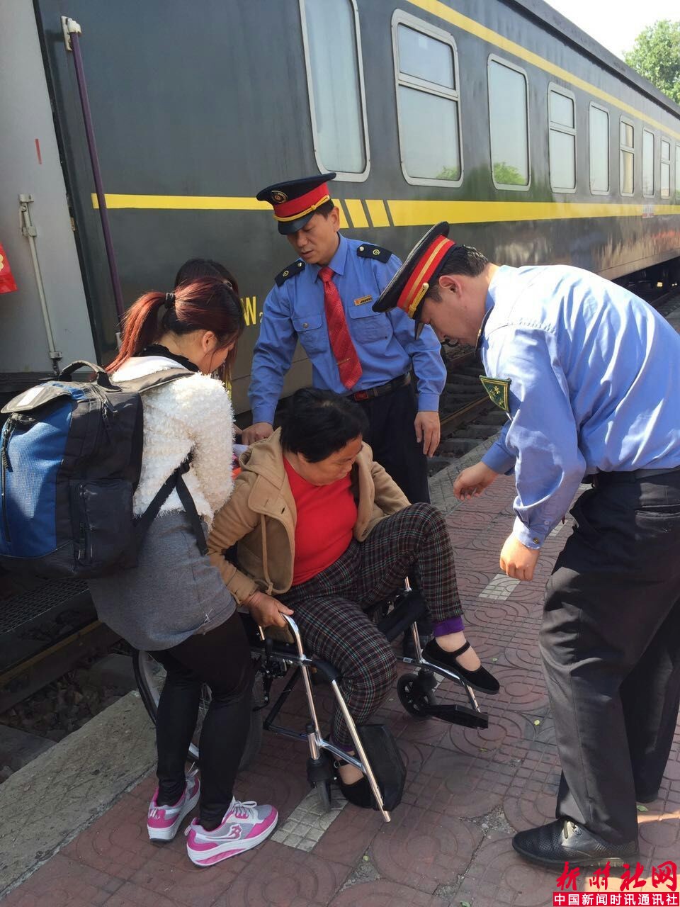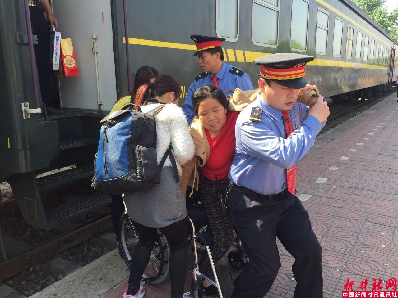 (本网讯:记者尹俊义)2016年4月30日,“诚之约”K603次品牌列车北京至运城始发。列车长郭志伟巡视车厢到8车,发现7号下铺陈佩珍残疾老人,嘘寒问暖的关怀中得知老人刚从北京做完手术回来,身体非常虚弱。立马叮嘱8车列车员丁凯细心照顾并将老人列为特殊重点旅客。列车到达终点站运城时,由于车站是低站台,老人下车极为不便,列车长郭志伟对老人说:上我背,我背您下车。在车长的用心安排和工作人员的精心呵护下,残疾老人舒心的带着微笑顺利到站。
