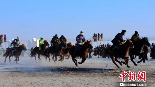 图为春节期间草原牧民举办的赛马比赛 呼伦贝尔旅游局提供