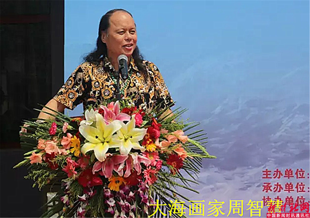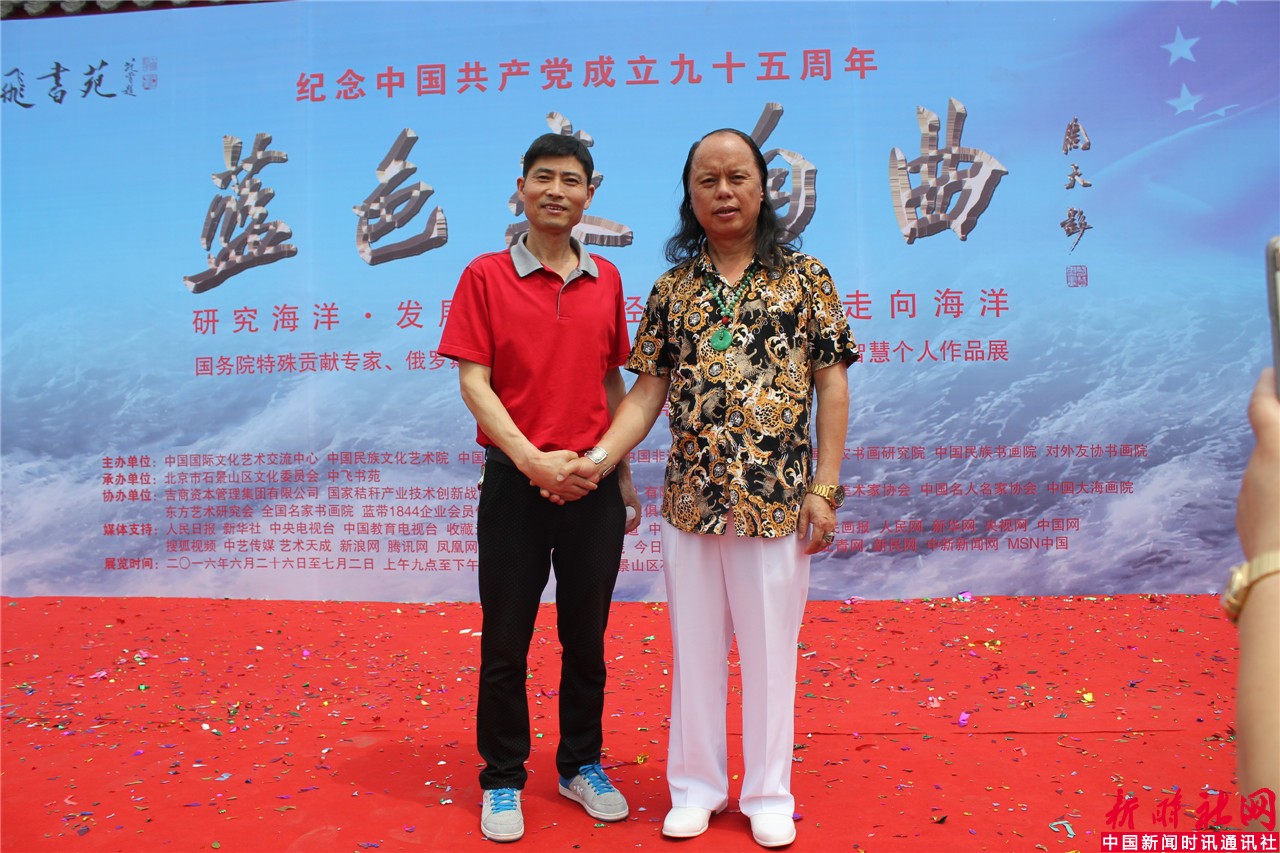 本社特约记者宋洁报道:为庆祝中国共产党成立九十五周年,6月26日由中国国际文化交流中心、中国少数民族文化艺术促进会、中国非遗文化艺术组委会、中国民族书画院,北京市石景山区文化委员会、中飞书苑(北京)文化传媒有限公司,吉商资本管理集团有限公司、国家秸秆产业技术创新战略联盟、中国吉商协会共同创办的“蓝色交响曲—国务院特贡专家、俄罗斯艺术科学院院士、中国画海第一人周智慧个人作品展”在北京中飞书苑隆重开幕。出席开幕式的嘉宾有国家新闻出版总署原副署长张乐群先生,原军事博物馆馆长郭得河先生、原总参政治部主任汪孔周先生、中国当代著名书法家、教育家、电影艺术家姚俊卿先生,中飞书苑执行院长李春亮先生、中国三峡书画院院长周森先生、原民族文化宫主任刘宝和先生、北京市石景山区书法家协会主席杨文华先生、美国孔子学院教授、著名书法家爱新觉罗·焘平先生、中国电力董事长陈朝辉先生、吉商资本管理集团总裁谢挺夫先生、原公安部纪委副书记沈淑敏女士、湖南大汉集团总经理付小林先生、周智慧胞弟著名画家周文华等。本次画展共展出周智慧老师作品50余幅,展期7天,展览持续至7月2日。