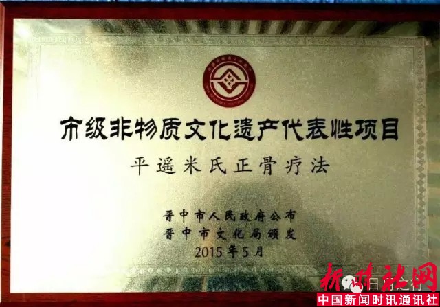 米晋明有长期在人民医院骨科、正骨专科诊所、正骨医院等机构学习和工作的经历,在正骨、针灸、中西医结合诊疗等方面总结形成了自己的独特疗法,其德馨仁术赢受到群众广泛赞誉,得到组织充分肯定。他先后获得卫计局颁发的住院病历评比奖,中国针灸协会、中推医学研究理事会联合评审的“中医正骨杰出人才奖”,中华特色医学学会会员等医学专业领域的荣誉,被当地党委表彰为优秀共产党员。经有关部门批准,米晋明于1998年开设专科诊所,2013年扩展规模形成专科医院。2015年5月,米晋明秉承执掌的“平遥米氏正骨疗法”被晋中市人民政府确定为“市级非物质文化遗产代表性项目”。