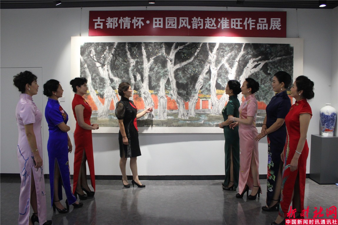 此次画展由中信国安静赏轩艺术馆主办、北京古都艺苑文化发展有限公司协办,展出作品30幅,主要以田园古都为题材,不再延续尺幅巨大、气势恢宏的创作风格,而是以形式新颖、内容丰富、笔墨松动、意境清晰的小幅作品为主,饱满精致的独特风格所展现,开幕式得到了众多单位的支持,老甲美术馆、北京中艺展览有限公司、中国文化艺术发展促进会等众多单位和友人纷纷敬送花篮祝贺,中国旗袍艺术委员的模特们现场走秀鼎力支持,使得会场热烈而有序……本次展期至7月16日,展期为9天。