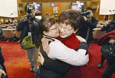 ▲洪秀柱30日上午做最后一次立院巡访,与工作人员拥抱,恋恋不舍
