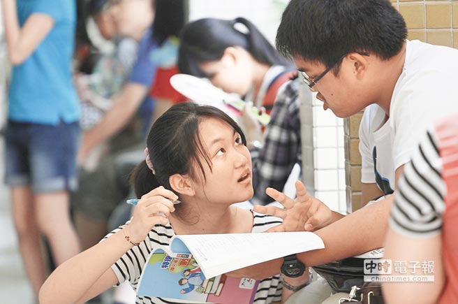 两名台生在相互讨论做数学模拟试题。(图片来源:台湾《旺报》资料照片)