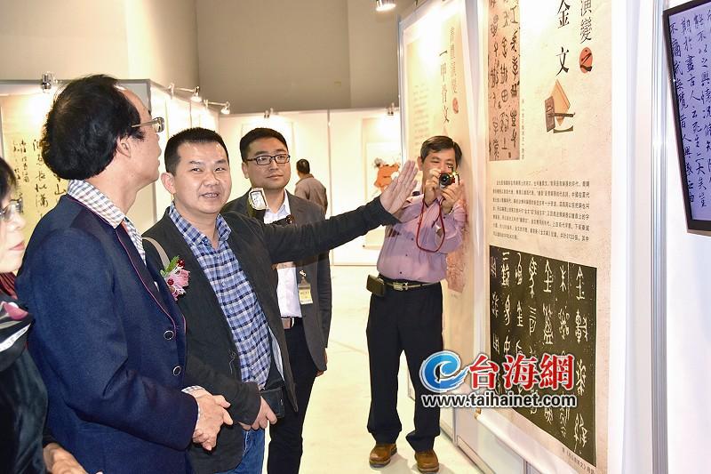 新时社网3月28日讯(海峡导报驻台记者薛洋文/图)闽台缘两岸书画交流展昨天在台湾科学工艺博物馆(位于高雄)开幕,来自海峡两岸名家的百余件作品对外展出,吸引很多高雄市民慕名前来观展。