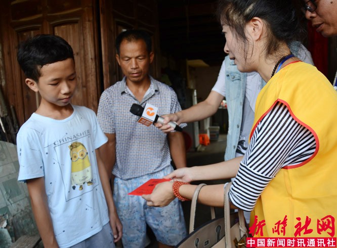 有的时候,就是我放假的时候就是会缝一些鞋帮什么的,来补贴家用。这个是一块三1双的。就是我现在想好好读书,以后找个好工作,然后呢把家里人就好好照顾他们。随后,爱心人士又来到了马屿镇篁社村和树排头村,为这里的两位初中生送上爱心款和生活物资。