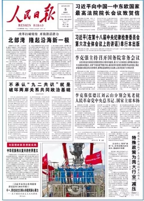 这不,5日出版的《人民日报》头版刊发评论员文章,通篇讲的都是九二共识。这种安排不寻常,台湾岛内更是关注。有人说,民进党大佬谢长廷剧透蔡英文就职演说不会提九二共识后,这是大陆官媒最新做出的回应。