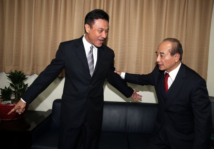 新任立法院长苏嘉全(左)2日拜会前任院长王金平(右)。图片来源:台湾《联合报》