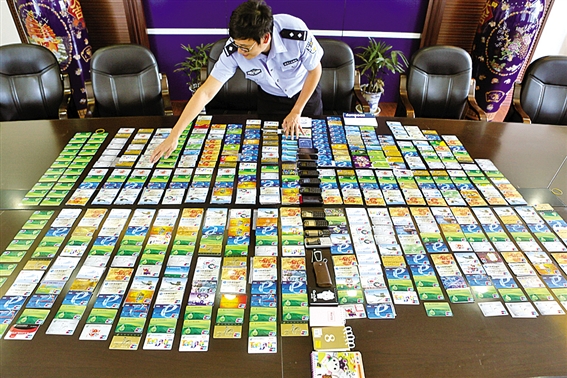 资料图:温州警方缴获的电信诈骗团伙所用电话卡