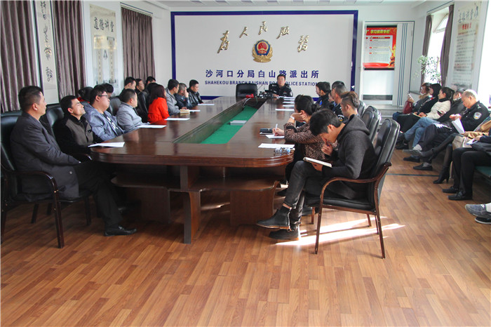 为确保十八届六中全会成功举办,同时为辖区广大市民提供平安、和谐、稳定的社会治安环境。10月26日,大连市沙河口区白山路派出所组织辖区内洗浴、舞厅、歌房、旅店等娱乐场所共40余家,召开社会化资源视频整合动员部署会暨行业场所治安管理专项工作会议, 场所负责人、法人共约50余人参加会议。