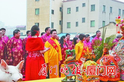 14日下午3时,金门进香团来到白礁村,进香团包括金门县政府、议会、乡镇长主席团,南门天后宫,斗门靖海堂,下新厝鹰龙庙等18个分队,十几座花轿载着保生大帝金身,从金门经过小三通转道厦门后一路抬过来。