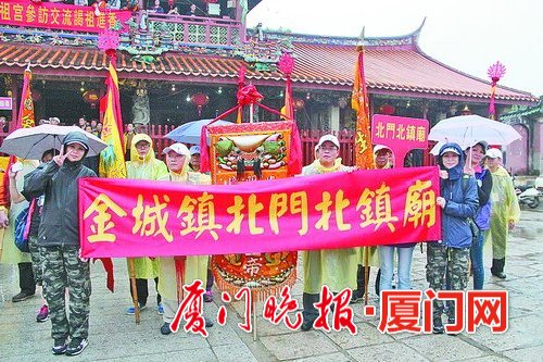 ■金门进香团的祭拜仪式吸引了众多信众和游客观看。