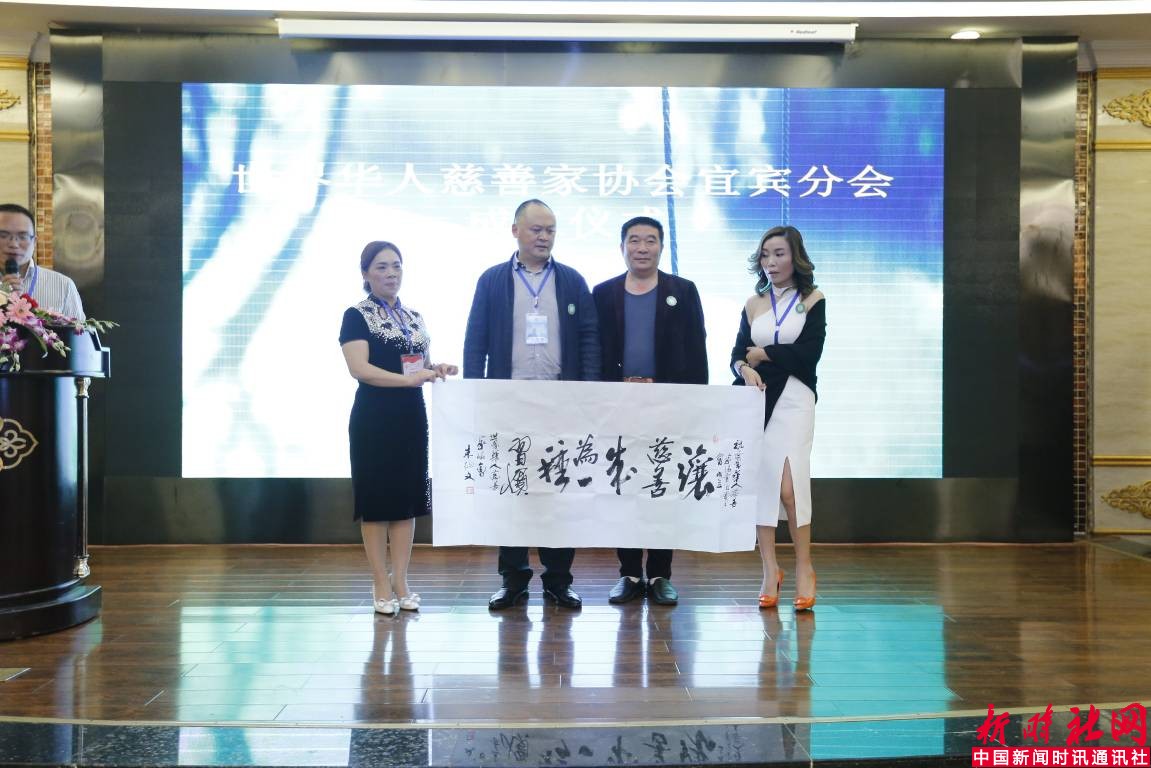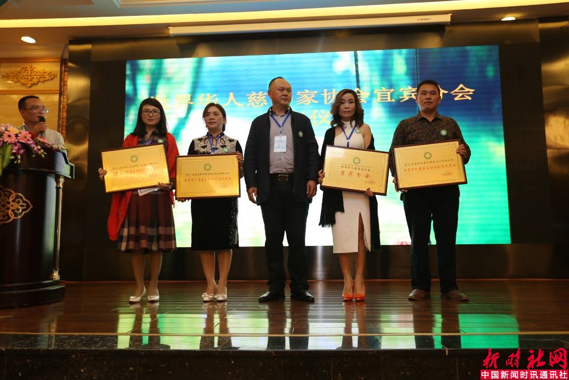 世界华人慈善家协会会长韦云华授予宜宾分会牌匾