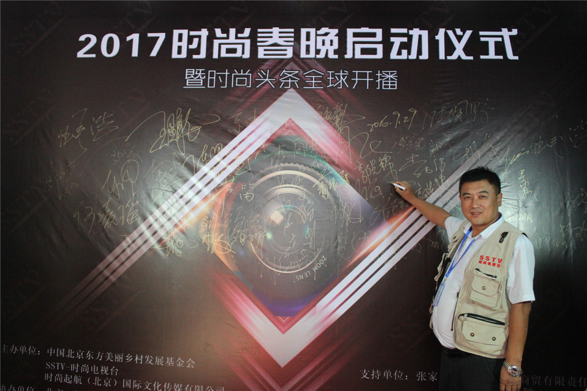 新时社记者宋洁报道:2016年9月29日,由中国北京东方美丽乡村行发展基金会,SSTV时尚电视,时尚起航(北京)国际文化传媒有限公司主办,圣希满(北京)国际文化传媒有限公司承办,北京一拍即合文化有限公司,张家界雄赳赳农产品商贸有限责任土芭篓品牌和新职农生态集团股份有限公司新职农品牌协办的,2017年时尚春晚启动仪式暨时尚电视台《时尚头条》全球开播仪式在北京星光大道东管世家演播厅隆重举行。中国北京东方美丽乡村发展基金会理事长芦笛、中央电视台社会与法频道主编芦宝国,时尚电视台顾问陈默及夫人王金枝,时尚电视台台长齐航,副台长贺方明、张健,中央电视台《中国美丽乡村行》执行制片人肖飞,中国教育台水墨丹青总导演刘海山 ,著名演员张二丹,企业家古建昕,画家李猛利 ,社会活动家王显龙等200多位嘉宾及20多家新闻媒体出席了此次活动,并为活动精彩表演。