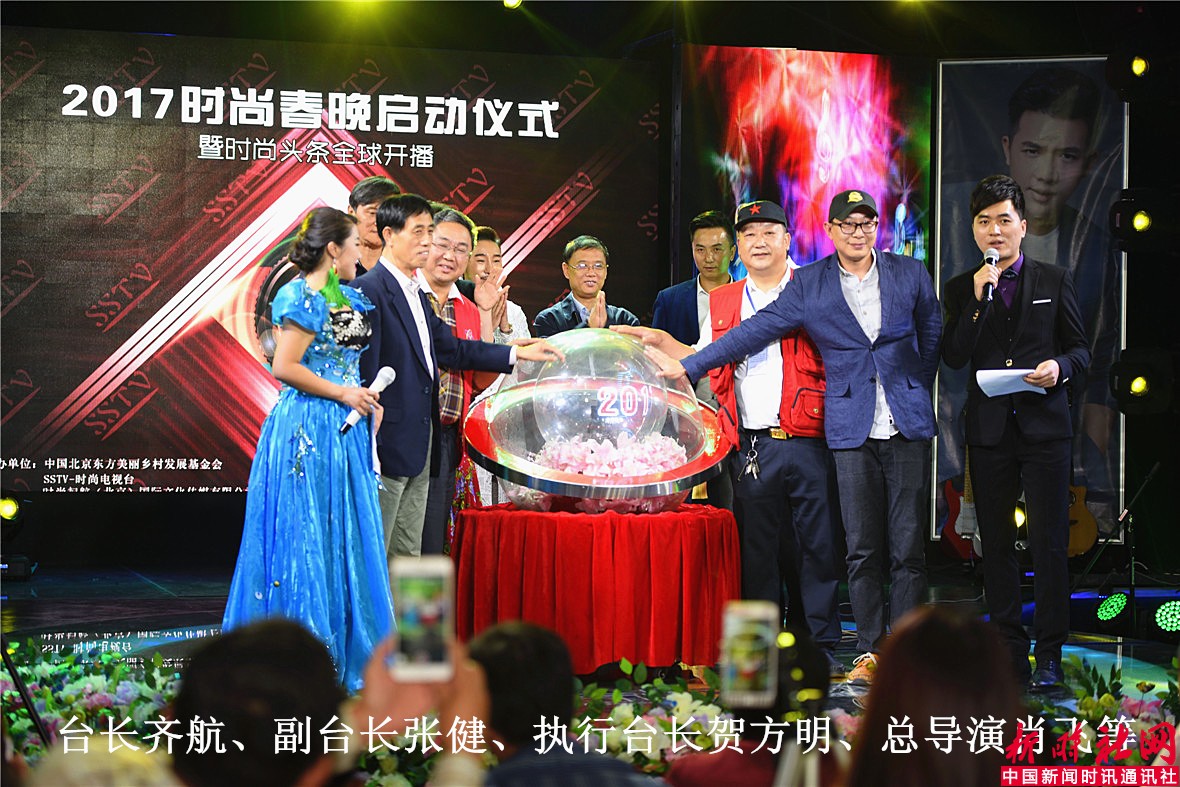 中国北京东方美丽乡村发展基金会理事长芦笛先生,作为主办单位并作精彩讲话:“SSTV时尚电视,是中国北京东方美丽乡村发展基金会支持创办的全球播出的高科技多媒体电视。指导思想是按照中囯北京东方美丽乡村发展基金会的宗旨和任务,落实三农政策,促进乡村发展。重点服务全国约60万个行政村,3000多万三农头企业,产业基地致富带头人,近3亿走出乡村各行各业的中华骄子。SSTV时尚电视的主要内容是世界城乡各地的发展建设成就,乡村美景、美食、美人、美事。新潮时尚的生活资讯和魅力感人的故事。收看SSTV时尚电视会让人们一新耳目,大开眼界。青春永驻,幸福美满,快乐舒心,健康长寿。SSTV时尚电视.时尚头条开播后,要继续开播中国美丽乡村行、中华骄子会客厅,民间高手、潮流电影、环球农业等节目。这些节目不但用手机扫描二维码可直接收看。城乡千家万户还会通过安装SSTV时尚电视台的高级无线机顶盒,同几百个电视频道一起公益性免费常年随时收看。SSTV时尚电视的运营要吸引各界优秀人才,打造一流的团队。通过开展各种活动带节目。通过对社会各界志愿者名流、名星形象代言人引领时尚的报道,社会新潮流思想生活热点的访谈来丰富节目。加强和中央电视台、省市县地方电视台、企事业内部电视及中国村世界门戸网,人民网,中国济困解难网、中华骄子网,农民日报等权威媒体的互联互通。扩大收视群和品牌影响力。争取把SSTV时尚电视办成"有用、有品、有情、有趣"民间民营的第一流的电视传媒。习总书记说:"人民对美好生活的向往,就是我们的奋斗目标"。SSTV时尚电视,以服务提升人民美好时尚生活为己任,为反映,宣传,传播好人民对美好生活的向往会不断努力奋斗,争取更大的胜利,让我们在希望的田野上大有作为”!著名小提琴演奏家时尚电视台顾问陈默先生也表示将一如既往的支持时尚电视台!《时尚头条》的总制片人肖飞先生向现场嘉宾解读了《时尚头条》“10,3,1”的创新制作理念,并在活动现场召集“时尚特派员”.......时尚电视台台长时尚春晚的发起人齐航先生介绍2017年时尚春晚的几个重量级的奖项并演唱了原创歌曲《勇敢去闯》。在所有掌声和欢呼声中邀请嘉宾一起启动了2017年时尚春晚,煤矿文工团青年演员沈凌云、歌手雅锋、彝苗歌手禾麻迪娜等也激情现唱与所有嘉宾热烈互动送上了最真挚的祝愿,祝愿时尚电视台越来越好,祝《时尚头条》收视长虹,祝2017年时尚春晚圆满成功!
