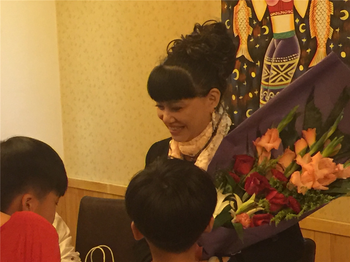 明星电视台台长、彝苗歌王、导演禾麻迪娜与著名歌手孙少杰联袂主持:彝苗公主禾麻迪娜歌声柔美,嗓音圆润,在此片中担任导演,也成了宝宝们喜爱的“女班主任”,禾麻迪娜在新闻发布会环节中主持并接受媒体采访,与搭档、“男班主任”孙少杰合唱了“天籁之爱”,在宝宝学书法环节中,带着宝宝们向书法家们请教,聆听书法知识,在带宝宝走访松堂关怀医院环节中,给老人们演唱了“红雪莲”,并带领众星和宝宝们看望“爱心小屋”的老红军病人,与李松堂院长成功对接“213爱心小屋”……禾麻迪娜在本片中可谓是立下汗马功劳,每一步导演及其到位,每一环节掌握的淋漓尽致,成功的完成了本节目的拍摄......